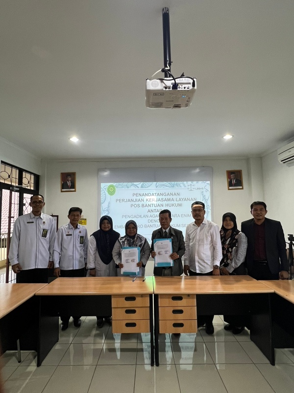 Penanda tanganan kerja sama antara Lembaga Bantuan Hukum (LBBH) Serasan dengan Pengadilan Agama Muara Enim dilakukan langsung oleh Ketua Lembaga Biro Bantuan Hukum (LBBH) Serasan Muara Enim Welly Hertoni, SH sementara dari Pengadilan Agama Kelas Muara Enim dilakukan langsung oleh Ketua Pengadilan Agama Muara Muara Enim Ibu Suspawati, S.Ag.