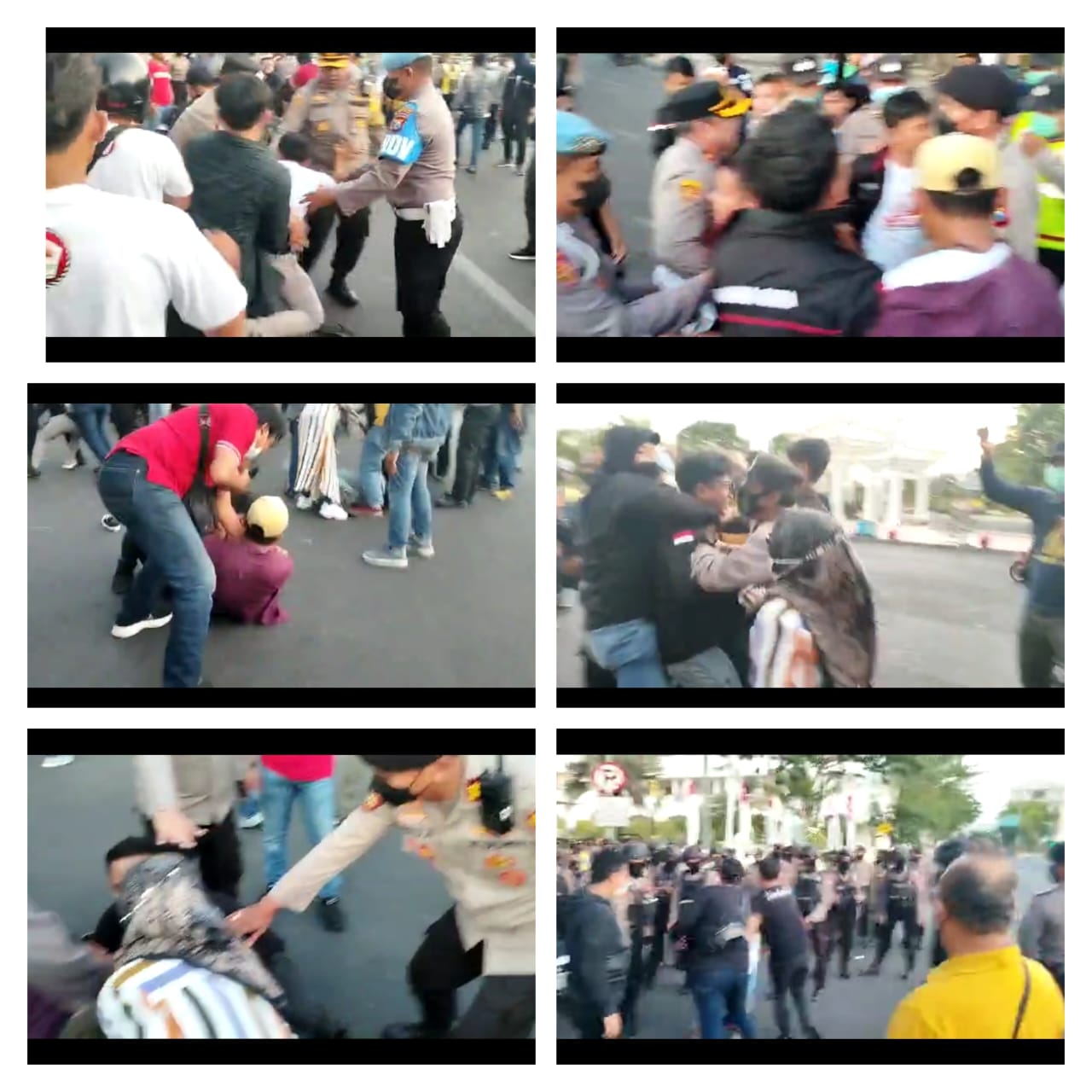 Hal tersebut seperti yang nampak di dalam video berdurasi 5 menit, sejumlah mahasiswa tiba tiba mendapatkan tendangan dari beberapa petugas,dicekik, serta dibanting ke tanah bahkan ditelanjangi bajunya.