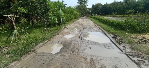 Pasalnya jalan poros dengan kontruksi paving tersebut saat ini rusak parah, selain berlobang jalan yang semula paving tersebut sudah harus direnovasi, lantaran kerap menyebabkan kecelakaan.