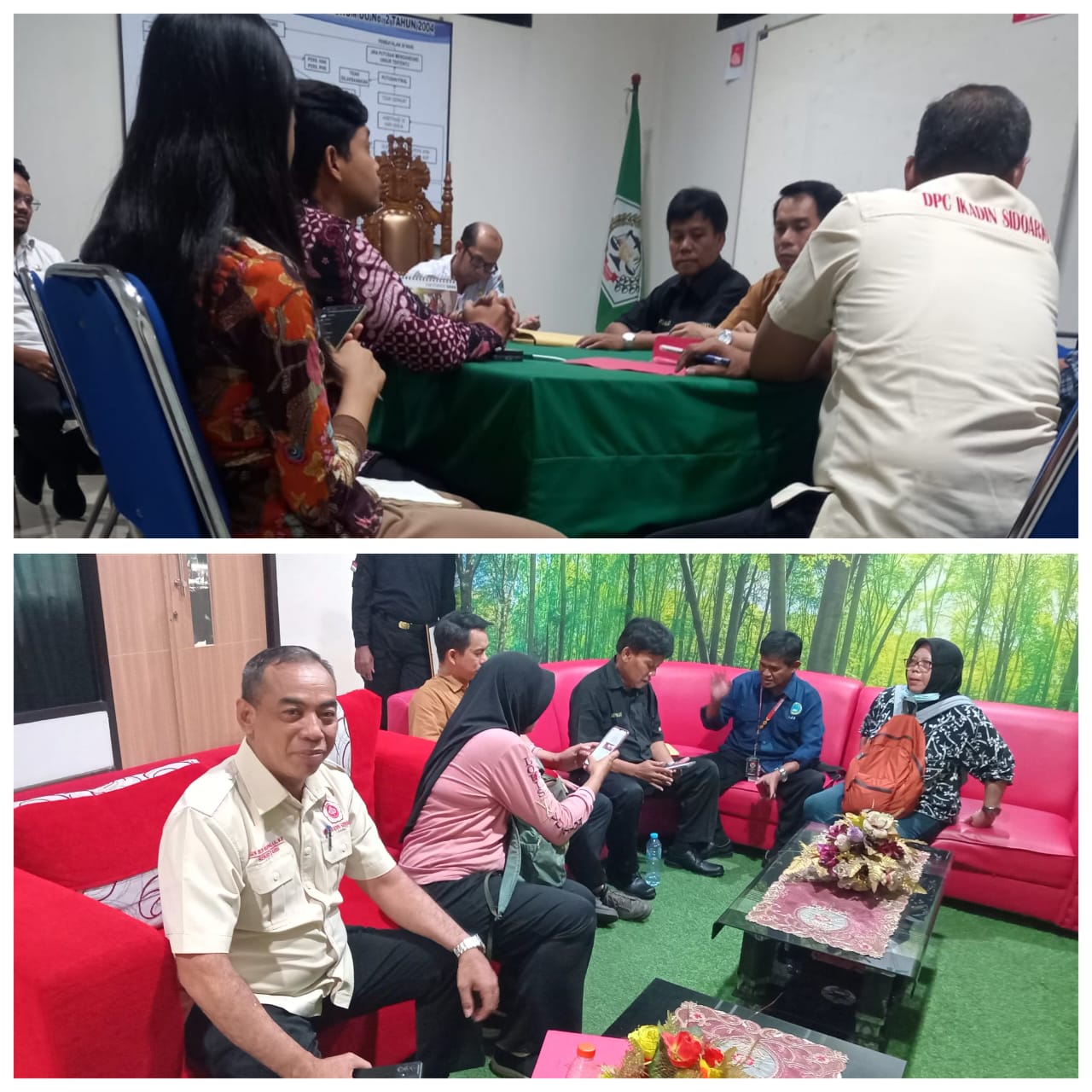 Kedua belah pihak hadir dengan didampingi penasihat hukum masing-masing. Pihak perusahaan diwakili oleh Didik Wahono, S.H., M.H., sedangkan ketiga pekerja didampingi oleh Sarwoedi Harahap, S.E., S.H., dan rekan. Selain itu, pihak outsourcing dari PT KIP turut hadir melalui penasihat hukumnya, Agus Budi Wahono, S.H., M.H. Sementara dari pihak Disnaker Sidoarjo hadir Novi Saputra Gozhali, S.H., Alrisa N, dan Calik Adisabara sebagai mediator.