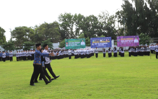MMCNEWS.ID | Pemerintah Kabupaten Jombang melaksanakan Upacara Bendera dalam rangka memperingati Hari Ulang Tahun Ke-53 Korpri, Hari Kesehatan Nasional Ke-60, Hari Ulang Tahun Ke-79 PGRI, dan Hari Guru Nasional Tahun 2024, di Lapangan Pemerintah Kabupaten Jomban pada Jumat (29/11/2024).