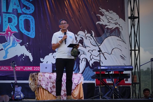 NIAS SElATAN | MMCNEWS – Menteri Pa FC vsriwisata dan Ekonomi Kreatif Republik Indonesia, Dr. H. Sandiaga Salahuddin Uno, BBA., MBA. membuka secara resmi Nias Pro 2022 Word Surf League QS 5000 di Pantai Sorake Kecamatan Luahagundre Maniamolo Kabupaten Nias Selatan Provinsi Sumatera Utara, Rabu (22/6/202).