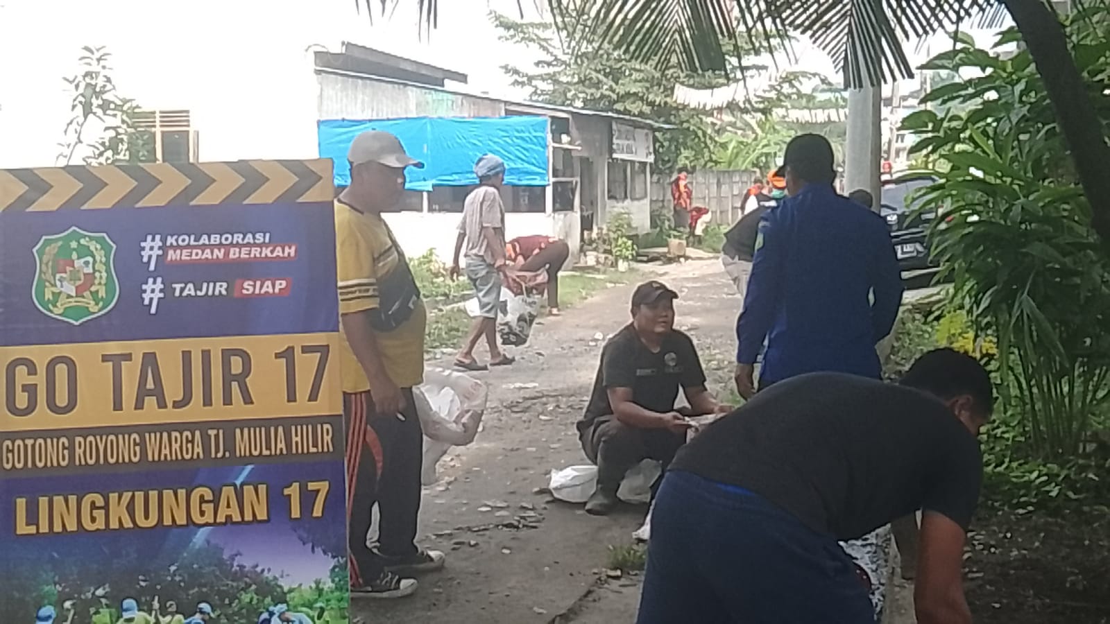 Kegiatan gotong – royong langsung dipimpin lurah Tanjung mulia hilir Hendra Syahputra.
