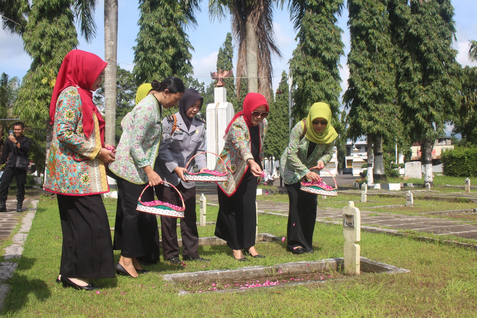 JEMBER – Para anggota Paguyuban Ibu Ibu Pemasyarakatan (PIPAS) Lapas Kelas IIA Jember berziarah ke Taman Makam Pahlawan, Jalan Slamet Riyadi Jember. Ziarah tersebut dilaksanakan sebagai salah satu agenda peringatan Hari Ulang Tahun ke 21 Pipas. Ketua Pipas Lapas Jember, Astuti Hasan memimpin kegiatan tersebut.