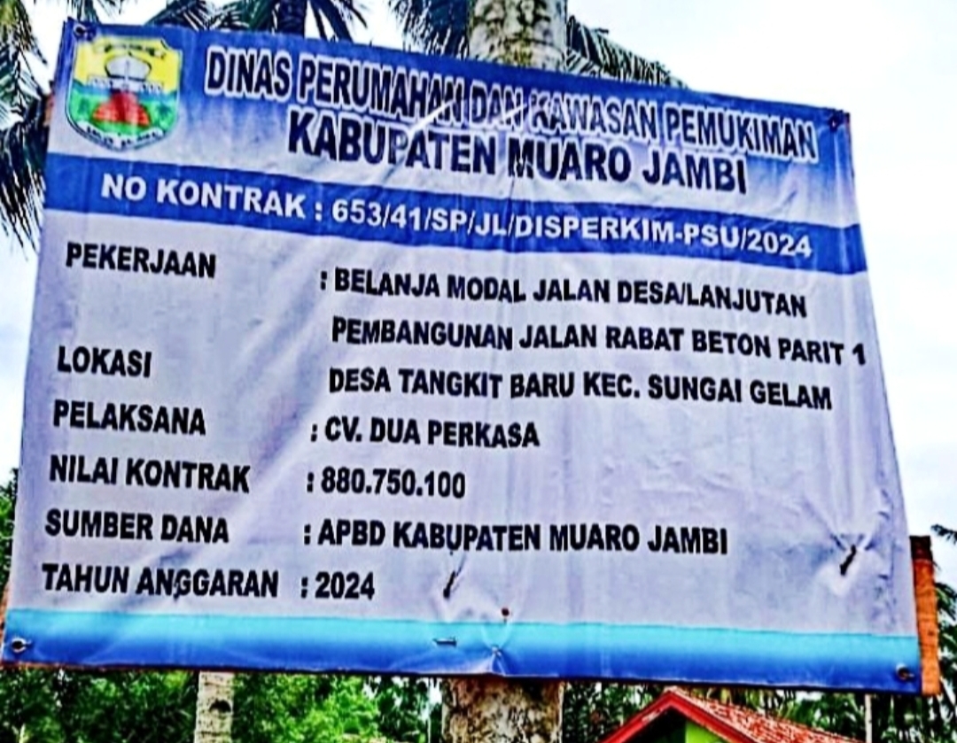 Kota Jambi mmcnews.id Pekerjaan jalan rabat beton (Jalan lingkungan) dusun parit 1 desa tangkit baru” kecamatan sungai gelam” baru selesai di kerjakan sudah mengalami kerusakan fatal bersumber dana APBD tahun 2024 kabupaten Muaro Jambi.