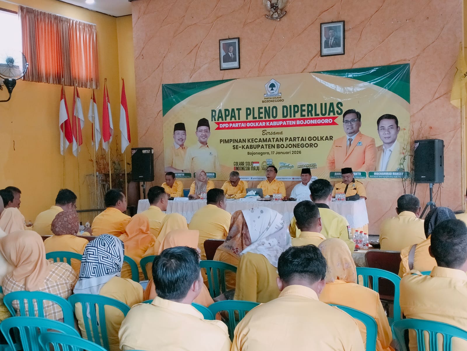 BOJONEGORO — Dewan Pimpinan Daerah (DPD) Partai Golkar Kabupaten Bojonegoro menggelar Rapat Pleno Diperluas sebagai langkah awal konsolidasi organisasi memasuki tahun politik menuju Pemilu 2029, Sabtu (17/1/2026).