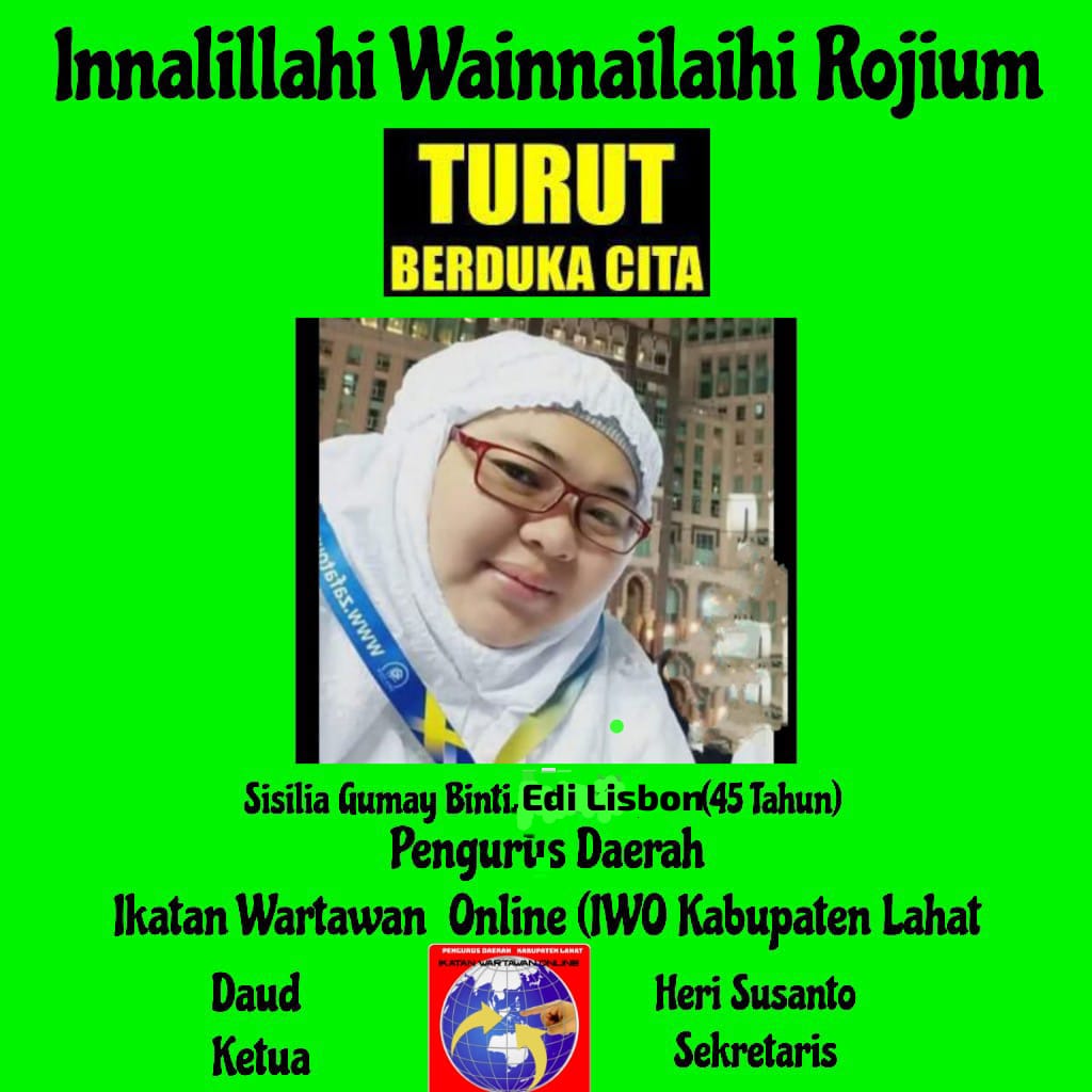 Kabar Duka yang mendalam telah menyelimuti Pengurus Daerah Ikatan Wartawan Online Kabupaten Lahat telah meninggal dunia seorang Wanita Terbaik di dunia Jurnalis tergabung di Organisasi Ikatan Wartawan Online yang bertugas dalam Wilayah Kabupaten Lahat