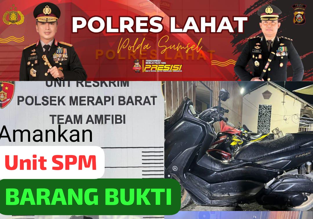 Aksi Nekat Peencurian kendaraan bermotor (Curanmor) kembali terjadi di wilayah hukum Polsek Merapi. Seorang pelaku berhasil diamankan oleh personel Polsek Merapi setelah diduga mencuri sepeda motor milik korban Seno Agata Merkin bin Paisol diruko miliknya desa Muara Maung kecamatan Merapi Barat yang terparkir di teras ruko. Penangkapan tersebut dilakukan setelah polisi menerima laporan dari korban dan melakukan penyelidikan di lokasi kejadian, berdasarkan Laporan Polisi LP/B/12/III/2026/SPKT Polsek Merapi Barat/Polres Lahat/Polda Sumsel tanggal 10 maret 2026.