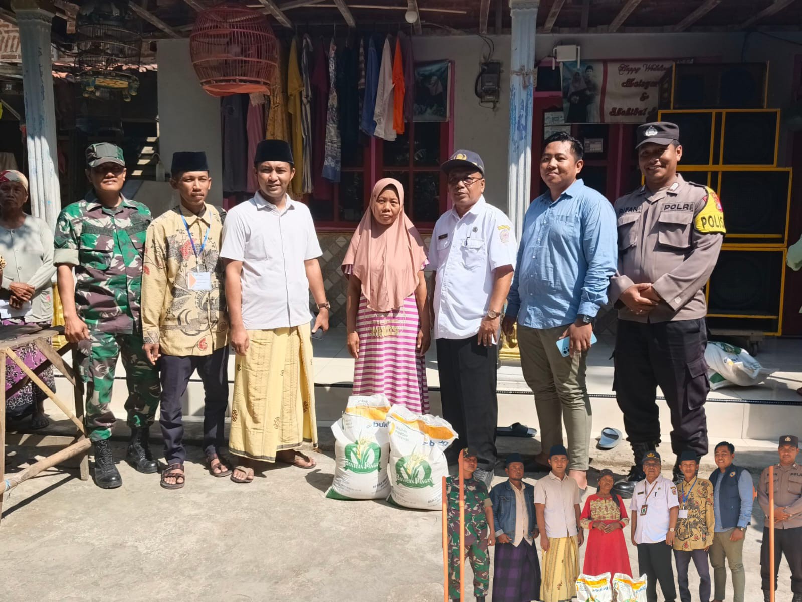 Ket foto; Rahmatul Bari kepala desa saat memantau pendistribusian banpang didampingi kepolisian dan koramil.