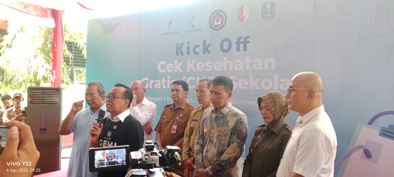 Bojonegoro, – Pemerintah RI, di bawah kepemimpinan Presiden Prabowo, telah meluncurkan program pemeriksaan kesehatan gratis untuk siswa di seluruh Indonesia. Program ini bertujuan untuk mendeteksi penyakit dan meningkatkan kualitas kesehatan siswa. Hal itu disampaikan Dr Pratikno Menteri Koordinator Pembangunan Manusia dan Kebudayaan saat kick off CKG (Cek Kesehatan Gratis) di SMPN 1 Padangan, Bojonegoro, Jawa Timur, Pada Senin, (04/08/2025).