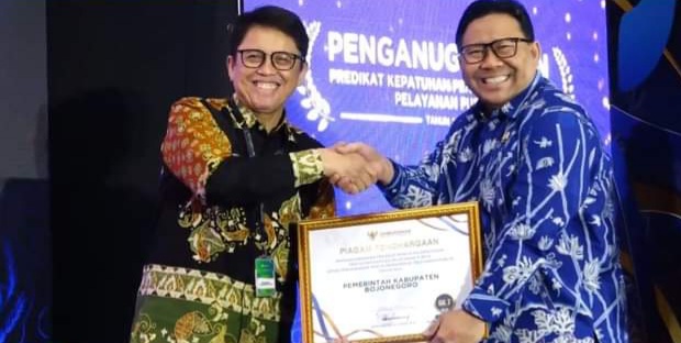 Bojonegoro – Pemerintah Kabupaten Bojonegoro menduduki nilai terbaik ke-5 tingkat nasional untuk predikat Kepatuhan Penyelenggaraan Pelayanan Publik tahun 2024 kategori Kabupaten. Penganugerahan ini diserahkan langsung kepada Pj Bupati Bojonegoro Adriyanto, Kamis (14/11/2024) di Hotel Le Méridien Jakarta.