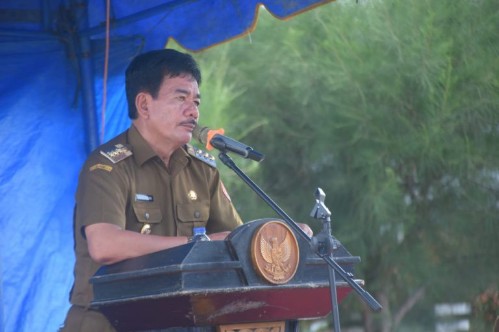 Bupati Nias Barat Barat Khenoki Waruwu menyampaikan sambutan dan arahan pada ibadah akhir tahun gerejani, Senin (28/11/2022)