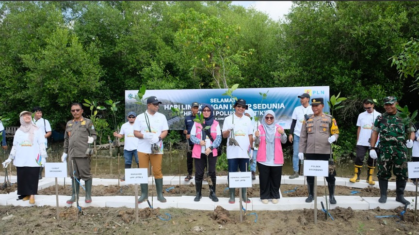 Surabaya, Mmcnews – 24 Juni 2025 — Dalam rangka memperingati Hari Lingkungan Hidup Sedunia 2025, PT PLN (Persero) Unit Induk Pembangunan Jawa Bagian Timur dan Bali (UIP JBTB) dan Unit Pelaksana Proyek (UPP) JBTB 2 Surabaya menyelenggarakan kegiatan penghijauan dengan melakukan penanaman 20.000 bibit mangrove Rhizophora mucronata di kawasan Taman Sedayu Lawas, Kecamatan Brondong, Kabupaten Lamongan (05/06).