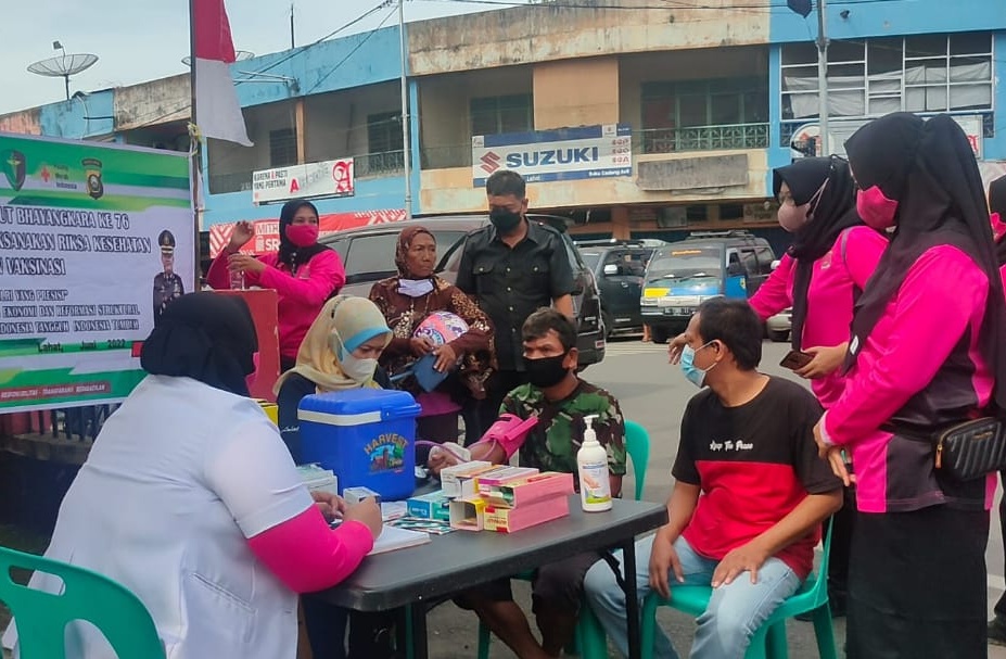 Kapolres Lahat AKBP Eko Sumaryanto, SIK didampingi ketua Bhayangkari Cabang Lahat, Ny. Endang Eko serta Wakapolres Lahat Kompol Feby Febriyana, SIK melalui Kasubsi Penmas Humas Polres Lahat, Aiptu Lispono, SH telah meninjau langsung kegiatan vaksinasi di Aula polres lahat, Khitanan massal yang berlokasi di ruangan Laboratorium RSUD Lahat, dan pemeriksaan serta pengobatan gratis di pos simpang 4 pasang Lematang lahat.
