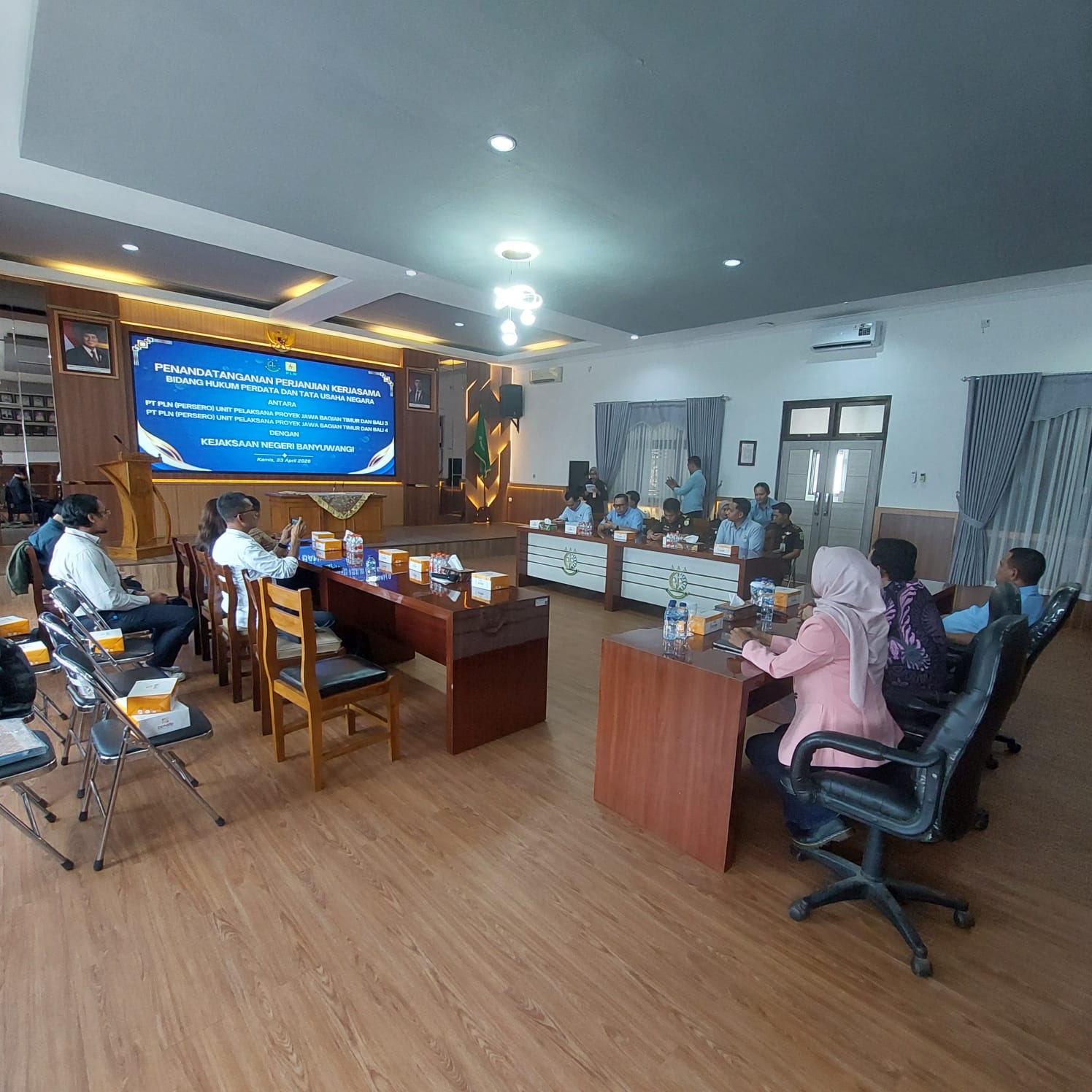 Acara penandatanganan PKS ini dihadiri langsung oleh Kepala Kejari Banyuwangi beserta jajaran, Manager PLN UPP JBTB 4, Nove Ardianto, Assistant Manager (Asman) Perizinan, Keuangan, Pertanahan, dan Umum UPP JBTB 3, Risty Christina Dewi, serta Asman Perizinan, Keuangan, Pertanahan, dan Umum UPP JBTB 4, Febrina Tonggo Resintawati.