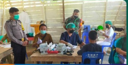 NIAS BARAT | MMCNEWS – Tim dari Personil Koramil 08/Mandrehe memberikan himbauan sekaligus memonitoring pelaksanaan vaksinasi di Desa Majingo, Kecamatan Mandrehe Barat, Kabupaten Nias Barat. Adapun Anggota Koramil 08/Mandrehe yang datang di desa tersebut diantaranya Serka Antoni Laia, Koptu. Abdinur Waruwu dan Kopda. T. Panggabean. Senin, (28/02/2022)