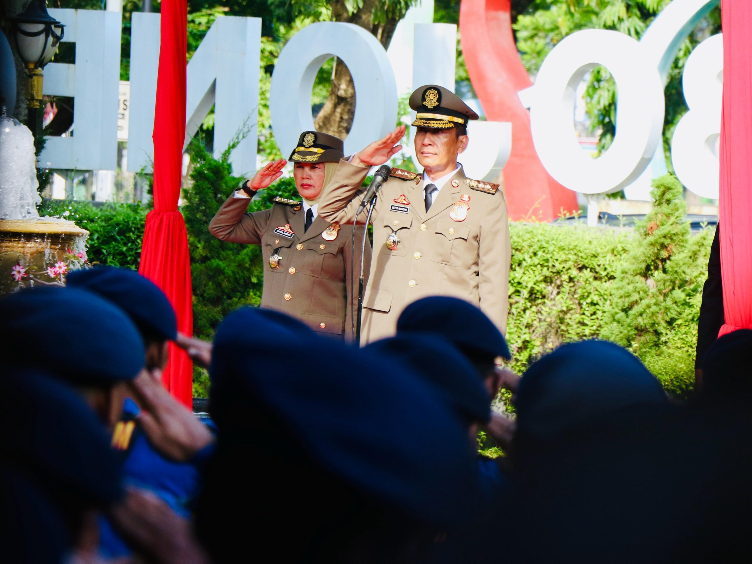 Dalam amanatnya Bupati menyampaikan bahwa Momentum hari ini memiliki makna yang sangat mendalam. Di satu sisi, kita memberikan penghormatan dan apresiasi atas dedikasi serta pengabdian tanpa lelah dari anggota Pemadam Kebakaran dan Penyelamatan serta Satuan Polisi Pamong Praja dan Satuan Pelindungan Masyarakat dalam menghadapi bahaya kebakaran dan situasi penyelamatan, menjaga ketentraman, ketertiban umum serta memberikan pelindungan kepada masyarakat.