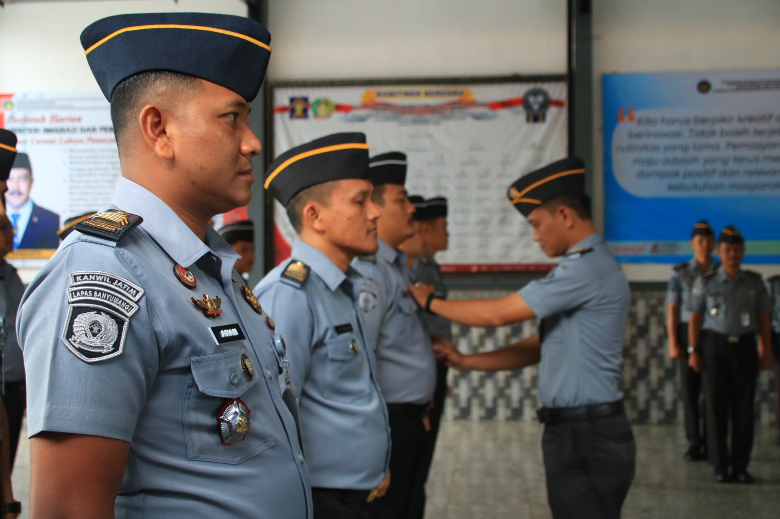 mmc.id /BANYUWANGI – Kepala Lembaga Pemasyarakatan (Kalapas) Kelas IIA Banyuwangi, Mochamad Mukaffi memimpin apel pagi pegawai di halaman kantor Lapas setempat, Senin (10/2).