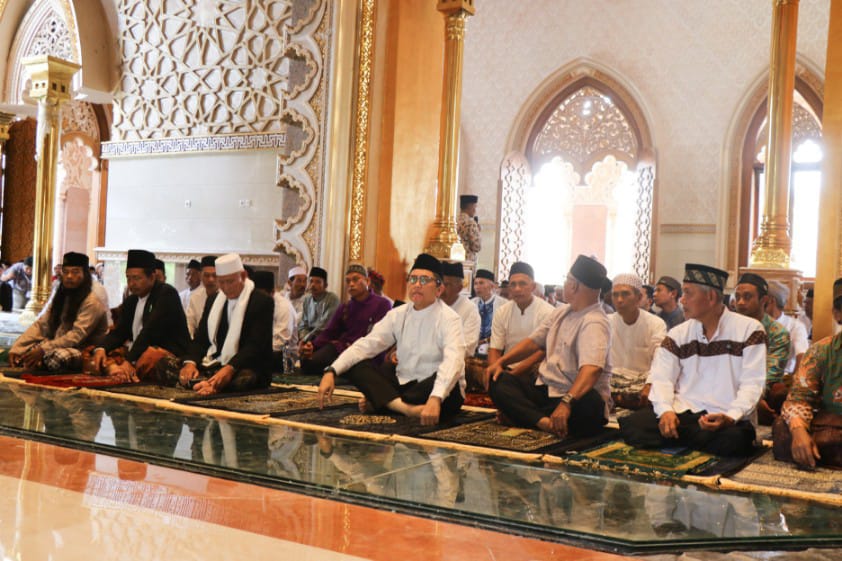 BOJONEGORO – Pj Bupati Bojonegoro Adriyanto di dampingi Asisten, kepala OPD dan bersama masyarakat sekitar melakukan Ibadah Sholat Jum’at perdana di Masjid Wisata Religi Desa Sumberrejo, Kecamatan Margomulyo, Jum’at 27 Desember 2024/25 Jumadil Akhir 1446 H.
