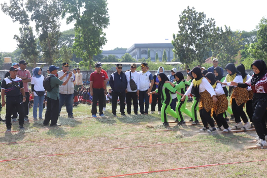 Dengan semangat tinggi, para pelajar putra dan putri tersebut beradu ketangkasan dalam berbagai permainan tradisional seperti tarik tambang, bakiak, egrang, dan gobak sodor.