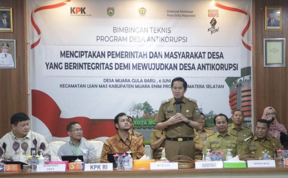 Muara Enim – MMCnews.id_ Plt. Bupati Muara Enim, Ahmad Usmarwi Kaffah, S.H., LL.M., LL.M., Ph.D., optimis Desa Muara Gula Baru, Kecamatan Ujan Mas meraih Desa Percontohan Antikorupsi Tingkat Nasional Tahun 2023 program desa antikorupsi yang diselenggarakan Komisi Pemberantasan Korupsi (KPK) RI. Hal ini disampaikan Plt. Bupati saat membuka bimbingan teknis (bimtek) desa antikorupsi yang diselenggarakan Direktorat Pembinaan Peran Serta Masyarakat KPK RI di Desa Muara Gula Baru, Kecamatan Ujan Mas, Selasa (06/06).