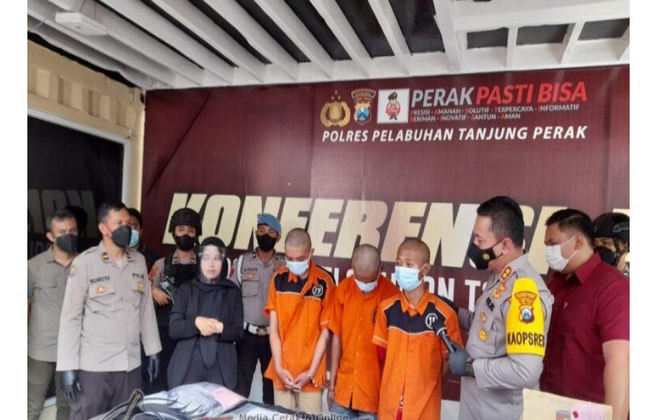 Kapolre Pelabuhan Tanjung Perak AKBP Anton Elfrino Trisanto, SH, S.I.K, M.Si yang didampingi kasat reskrim AKP Arif Wicaksana menjelaskan kepada awak media bahwa, pengeroyokan tersebut disebabkan para tersangka tidak Terima karena dilihati oleh korban, sehingga para tersangka menggeroyok korban yang berjumlah ( dua) orang.