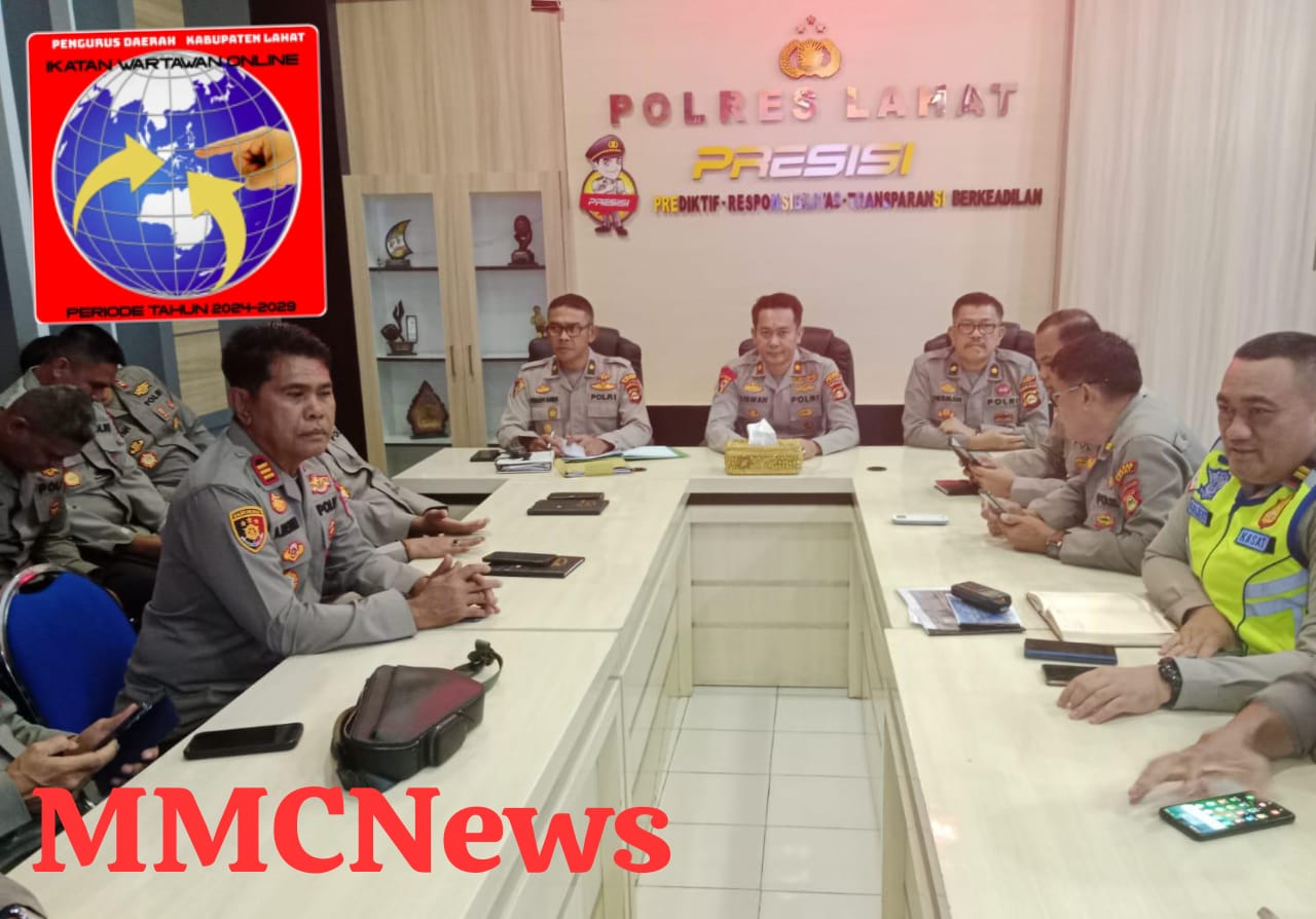 Jelang Hari raya Iedul Fitri 1Syawal 1446 H Polres Lahat mempersiapkan pengamanan menjelang Hari Raya Idul Fitri 1446 H. Kegiatan ini dilaksanakan di Aula Mapolres Lahat yang diikuti oleh seluruh personel dari berbagai satuan fungsi, seperti lalu lintas, samapta, intelijen, reserse, Binmas, Tik, Dokkes dan Humas.
