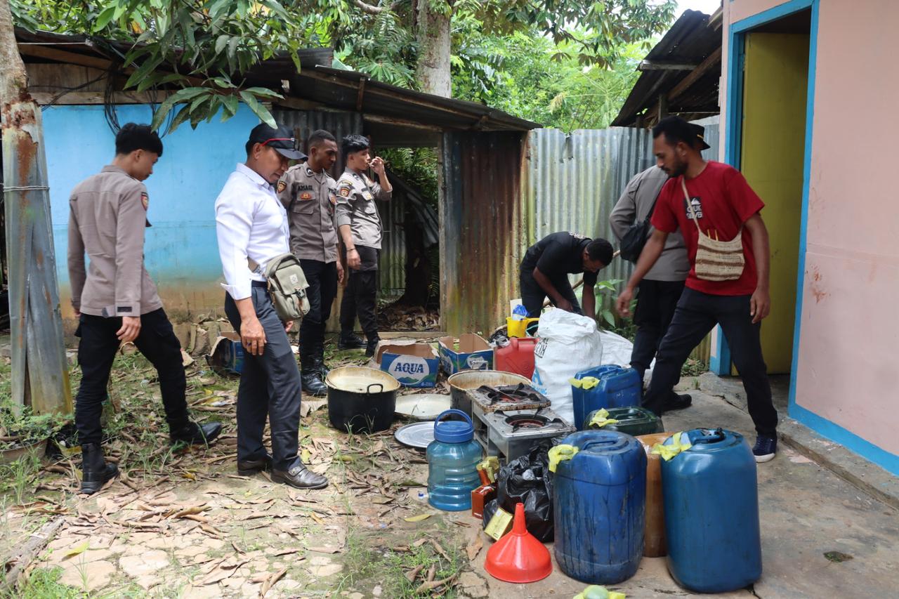 “Setelah meringkus IS kami melakukan pengembangan lebih mendalam dengan memeriksa saksi- saksi sehingga pada hari ini kami berhasil mengungkap lokasi yang dijadikan tempat pembuatan miras lokal oleh tersangka” bebernya”.