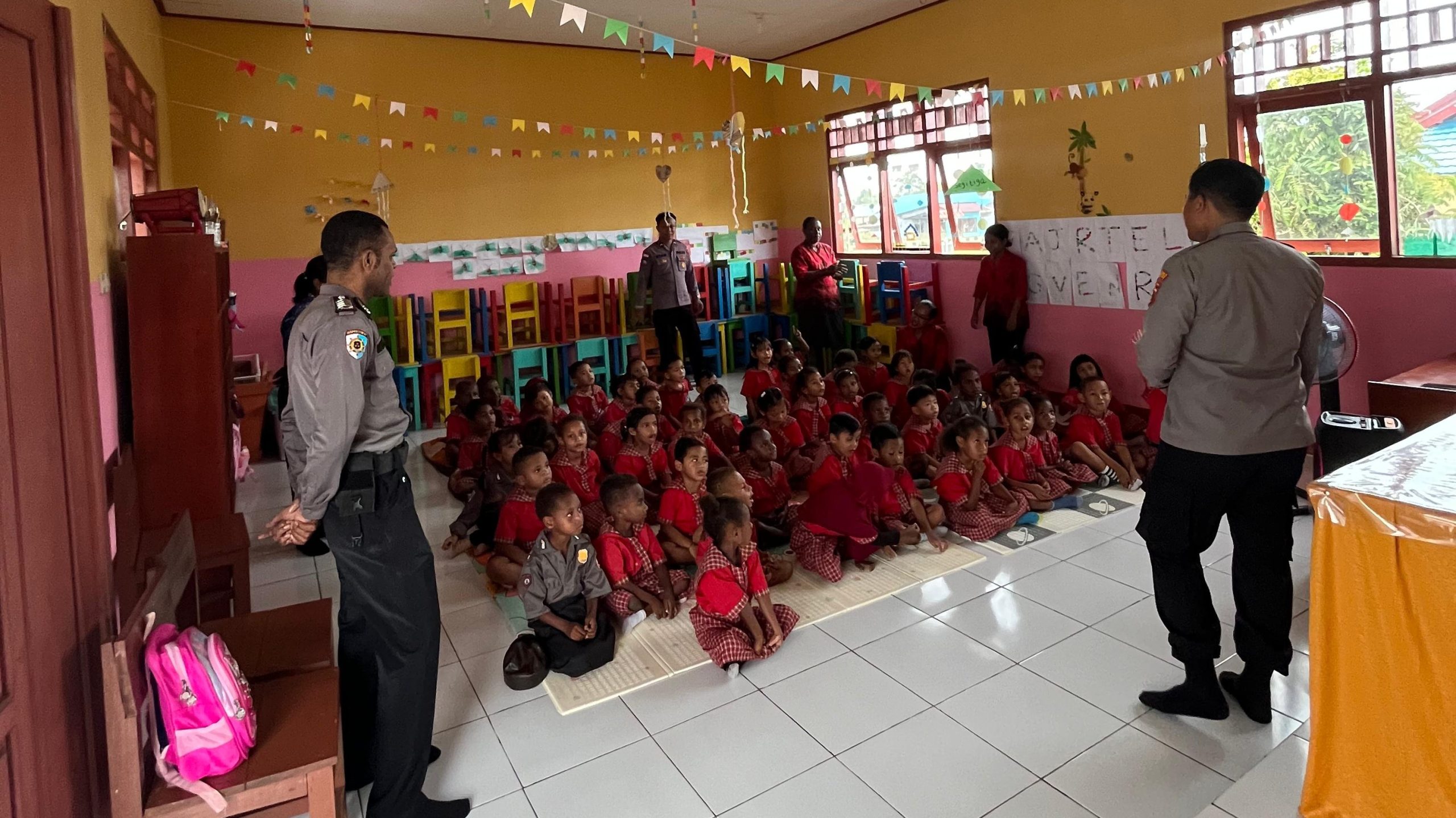 Mappi, Mmcnews – Personel Satuan Binmas Polres Mappi bersama Bhabinkamtibmas Kampung Emete menggelar kegiatan Polisi Sahabat Anak di TK Pembina Emete, Kamis (12/3/2026).