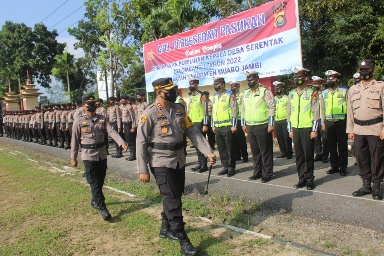 MUARO JAMBI | MMCNEWS — Ratusan personil gabungan dari Polres Muaro Jambi dan Polda Jambi serta Brimob siap diterjunkan ke lapangan untuk mengamankan Pilkades serentak 28 Maret mendatang.