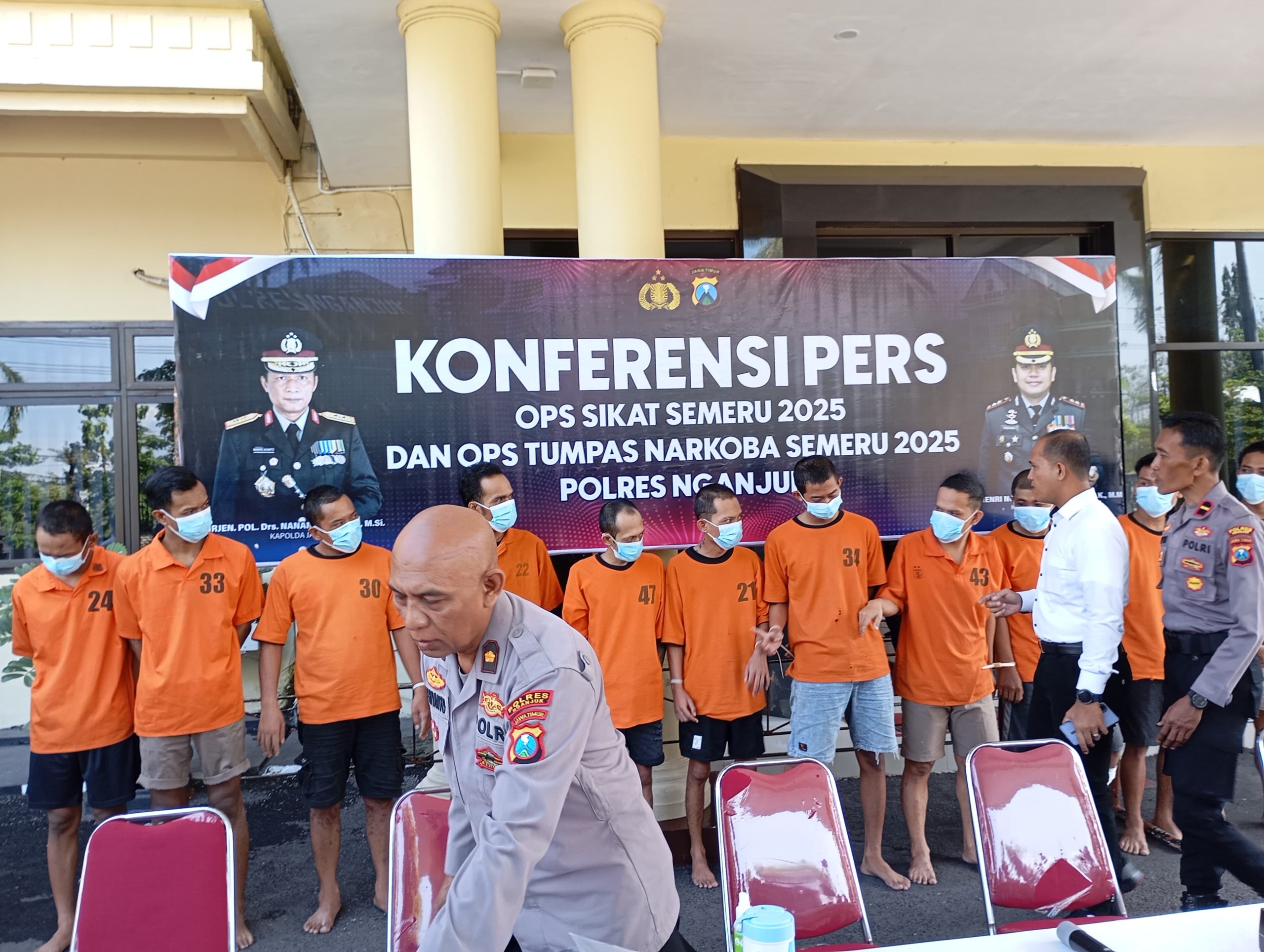 NGANJUK – Kepolisian Resor (Polres) Nganjuk, Jawa Timur, berhasil mengungkap 21 kasus tindak pidana selama pelaksanaan Operasi Sikat Semeru 2025. Dari hasil operasi tersebut, aparat kepolisian mengamankan 16 tersangka dari berbagai kasus kejahatan.