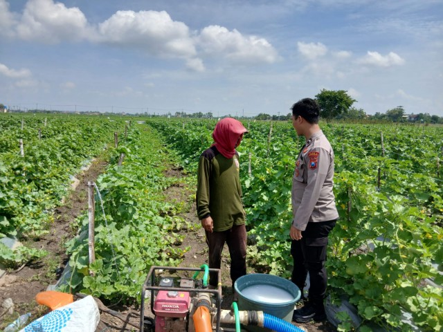 Dalam kunjungannya, Aipda M. Lutfin berdialog langsung dengan para petani melon untuk menyerap aspirasi serta mendengarkan berbagai kendala yang dihadapi di lapangan, mulai dari perawatan tanaman hingga faktor cuaca. Ia juga memberikan motivasi agar para petani tetap semangat dalam mengelola pertanian sebagai penopang perekonomian masyarakat.
