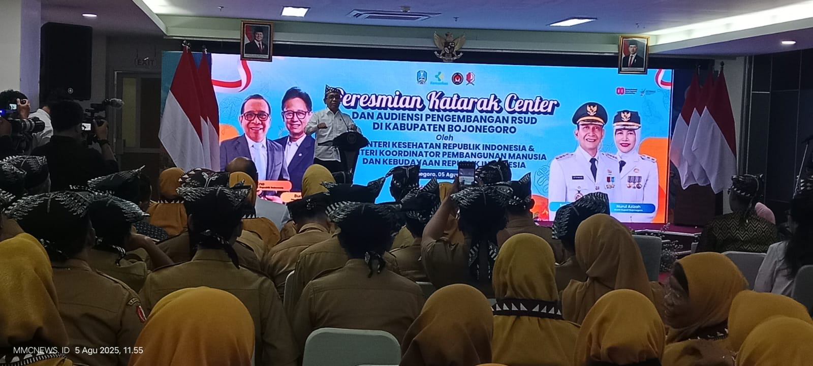 Bojonegoro – Diawali kunjungan ke pasien, Menko PMK Dr Prtatikno bersama Istri dan di dampingi Bupati Bojonegoro Setyo Wahono serta Dirjen Kementerian Kesehatan Dr Azhar Jaya menghadiri peresmian Katarak Center di RSUD Padangan, Bojonegoro Jawa Timur. Selasa (Selasa 05/08/2025).