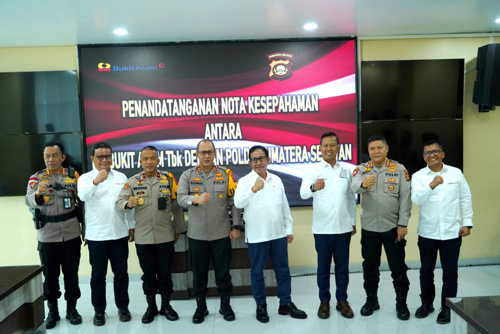 Palembang – MMCnews.id_ PT Bukit Asam Tbk (PTBA) dan Kepolisian Daerah Sumatera Selatan (Polda Sumsel) melakukan penandatanganan Nota Kesepahaman (MoU) terkait Bantuan Pengamanan Pada Objek Vital Nasional di PT Bukit Asam Tbk Sumatera Selatan. Kesepakatan tersebut diteken di Markas Polda Sumsel, Palembang, Senin (26/12).