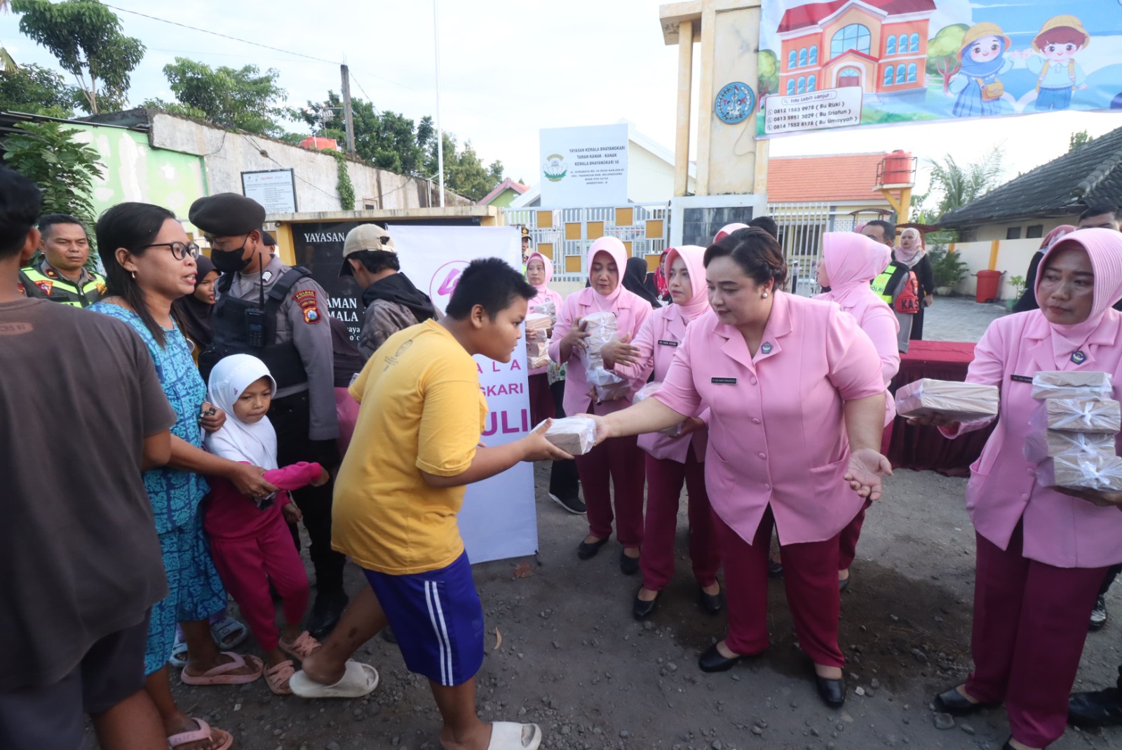Bojonegoro – Menyambut Hari Ulang Tahun (HUT) Yayasan Kemala Bhayangkari (YKB) yang ke-45 tahun 2025, Kapolres Bojonegoro, AKBP Mario Prahatinto, SH, SIK, M.Si, yang juga selaku Penasihat Yayasan Kemala Bhayangkari (PYKB) Cabang Bojonegoro, bersama Ketua PYKB Cabang Bojonegoro, Ny. Nea Mario Prahatinto, menggelar aksi sosial bagi-bagi takjil di jalan raya Bojonegoro – Cepu, Desa Banjarjo Kecamatan Padangan Kabupaten Bojonegoro, Rabu (12/3/2025) sore.