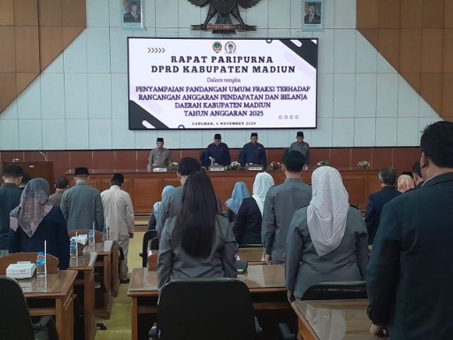 Madiun | MMC – Dewan Perwakilan Rakyat Daerah Kabupaten Madiun menggelar rapat paripurna. Rapat kali ini dalam rangka penyampaian pandangan fraksi terhadap RAPBD Kabupaten Madiun 2025. Bertempat di ruang rapat, acara tersebut digelar, Senin (04/11/2024).