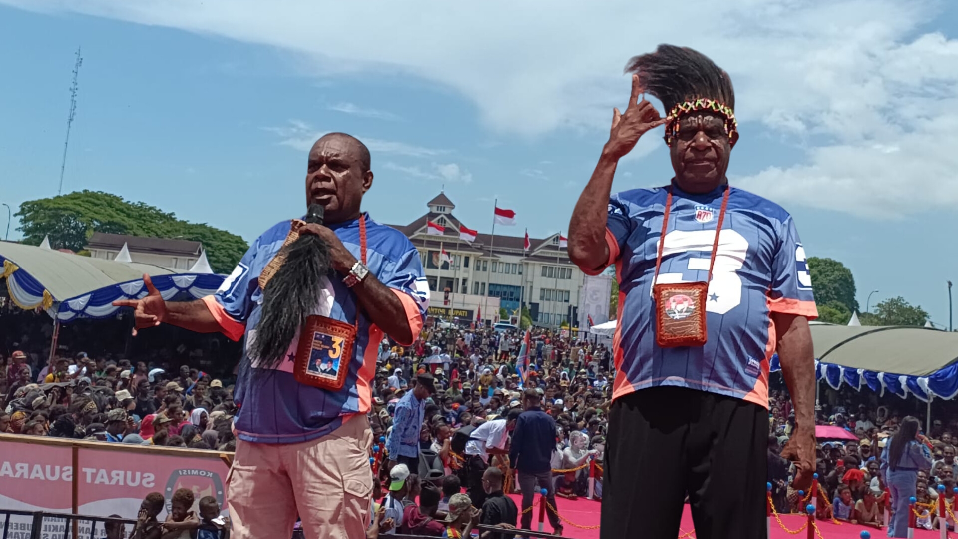Arak-arakan megah yang dimulai dari kediaman Romanus Mbaraka di Merauke melintasi rute strategis seperti Jalan Brawijaya dan Raya Mandala sebelum mencapai Kapsul Waktu menjadi momentum awal yang mencerminkan antusiasme pendukung. Ribuan massa yang tumpah ruah sepanjang rute arak-arakan menyimbolkan dukungan besar terhadap pasangan ini.
