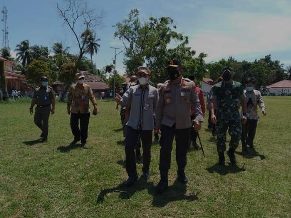 NIAS BARAT | MMCNEWS – Kapolda Sumut Irjen. Pol Drs. R.Z. Panca Putra Simanjuntak, M.Si., bersama Danrem 023/Kawal Samudera Kolonel (Inf) Febriel Buyung Sikumbang didampingi oleh Sekda Kabupaten Nias Barat Prof. Dr. Fakhili Gulo meninjau Pelaksanaan Vaksinasi Massal di Kecamatan Sirombu yang dilaksanakan di halaman sekolah SD Negeri 071172 Fabaliwa. Jumat (18/02/2022).
