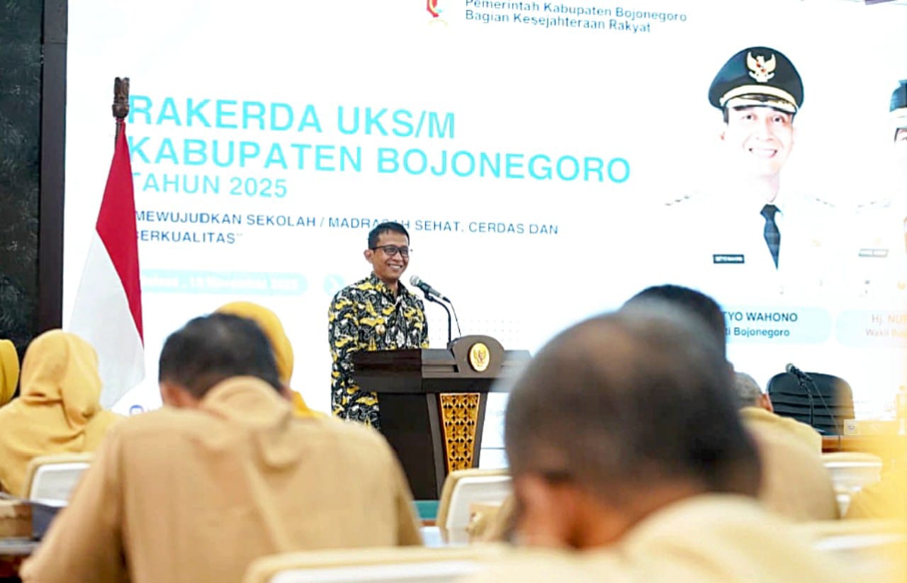 Bojonegoro – Pemerintah Kabupaten Bojonegoro melalui Tim Pembina Usaha Kesehatan Sekolah/Madrasah (UKS/M) menggelar Rapat Kerja Daerah (Rakerda) UKS/M tahun 2025, di Ruang Angling Dharma, Jln P Mas Tumapel Bojonegoro, Jawa Timur. Selasa (18/11/2025).