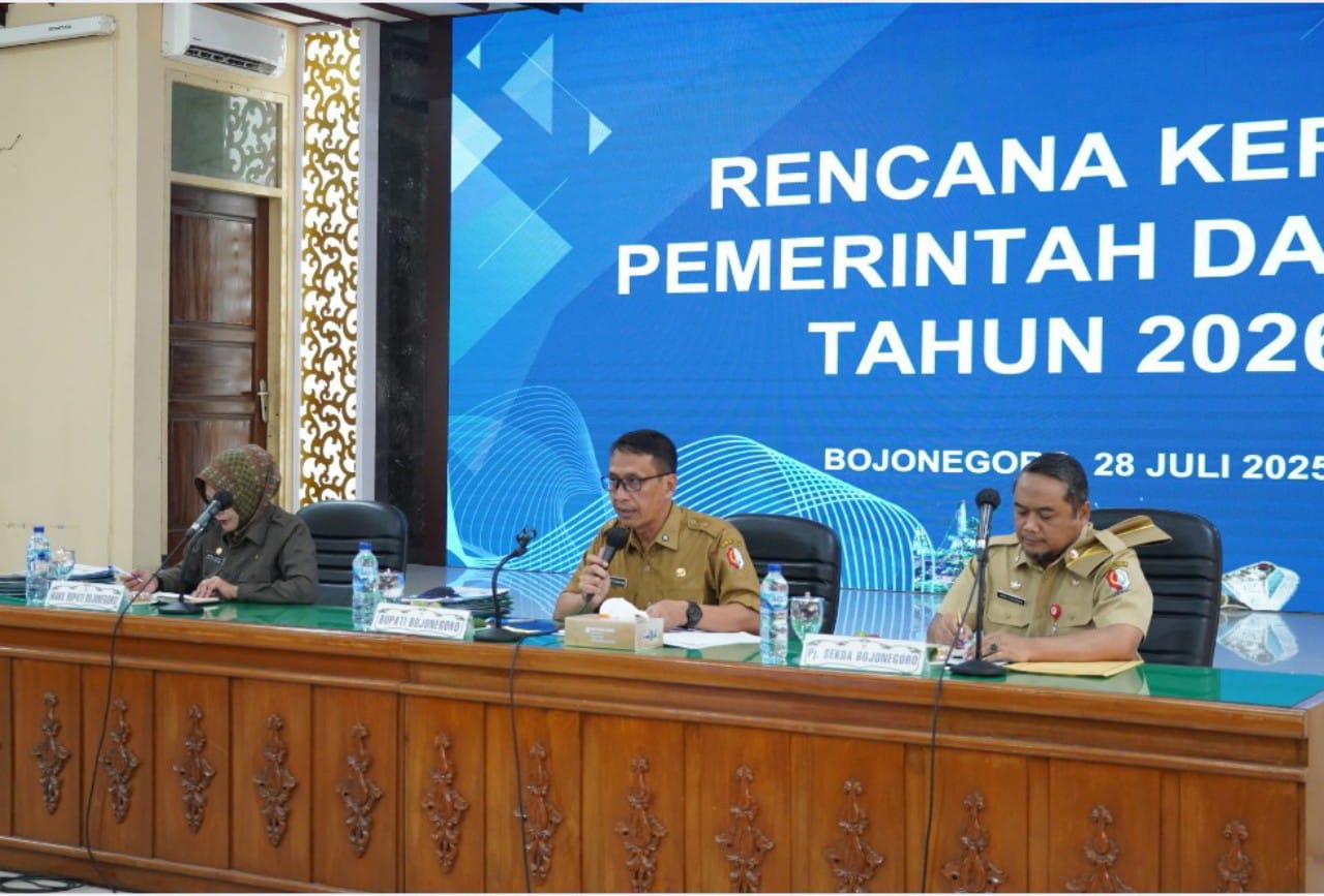 BOJONEGORO – Pemerintah Kabupaten Bojonegoro menggelar pemaparan rancangan akhir Rencana Kerja Pemerintah Daerah (RKPD) Tahun 2026 yang dipimpin langsung oleh Bupati Bojonegoro Setyo Wahono, didampingi oleh Wakil Bupati Nurul Azizah dan Penjabat Sekretaris Daerah Andris Sudjarwo, Senin (28/07/2025).