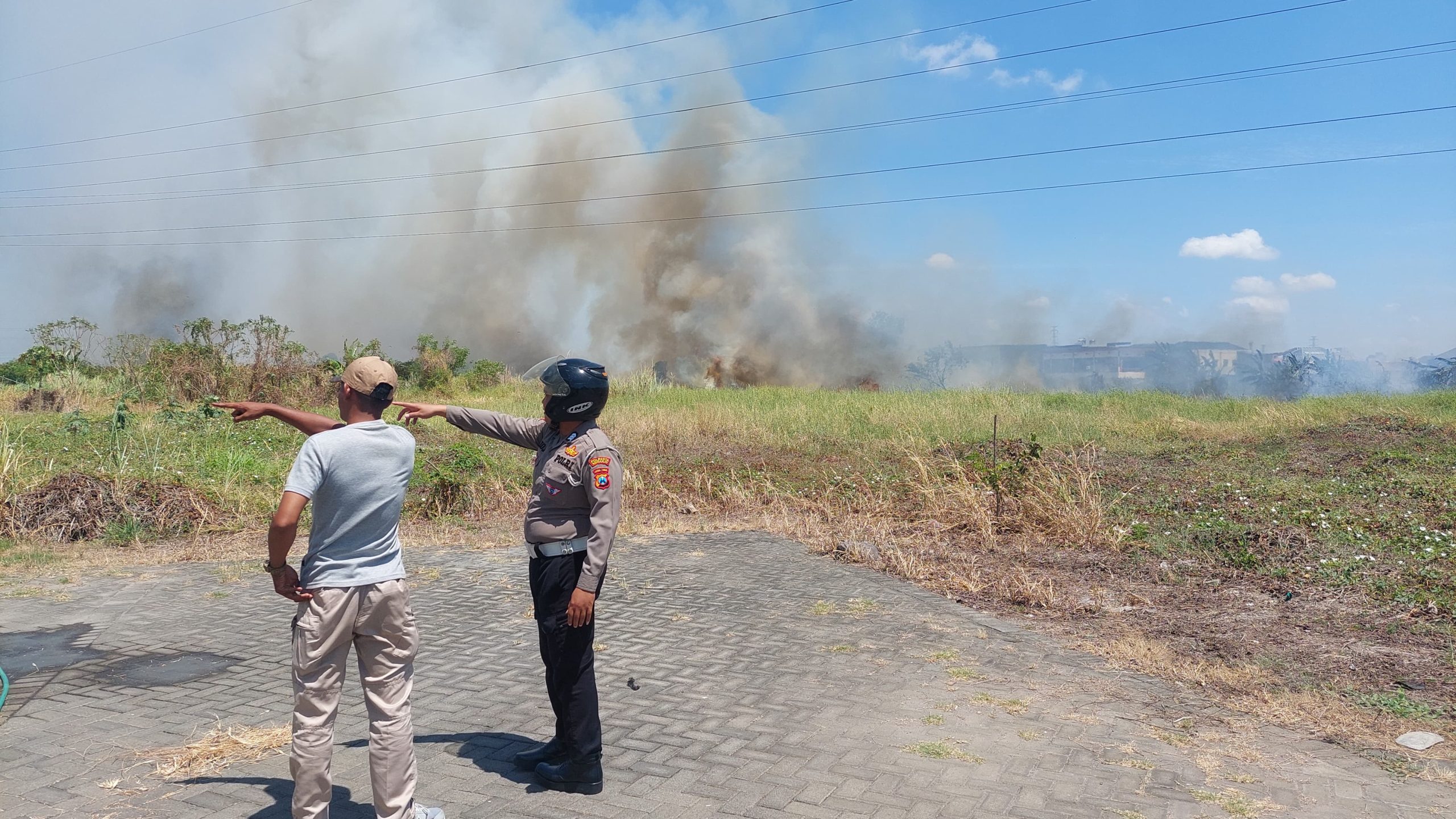 SIDOARJO | MMCNEWS – Ilalang kering di lahan kosong di kawasan area Perumahan Rizt Park Living, Desa Bangah, Kecamatan Gedangan, Kabupaten Sidoarjo, pada Minggu (28/9/2025) terbakar.