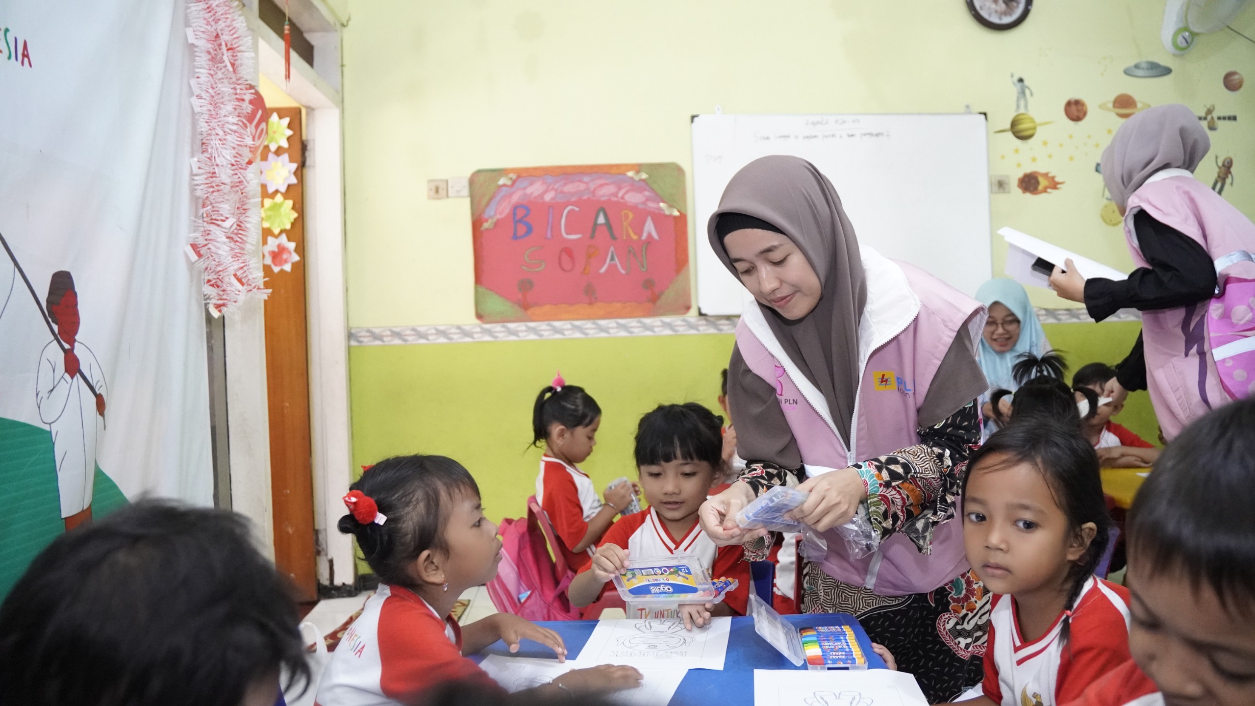 Acara ini diisi dengan berbagai kegiatan interaktif, seperti permainan edukatif, sesi menggambar, dan storytelling, yang dirancang untuk merangsang kreativitas dan minat belajar anak-anak. Relawan dari Srikandi dan PIKK PLN Icon Plus Jatim turut berpartisipasi aktif, menciptakan suasana hangat dan penuh keceriaan.