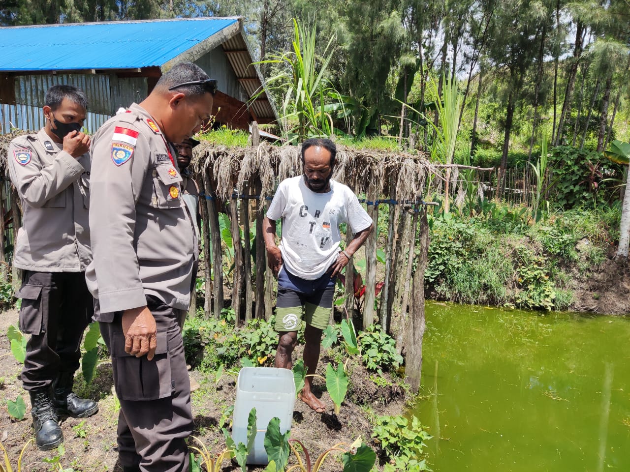 Penyerahan bibit ikan lele jumbo ini diserahkan langsung oleh Kasat Binmas Polres Paniai AKP Yulius Harikatang yang didampingi oleh 2 anggota Sat Binmas Polres Paniai.
