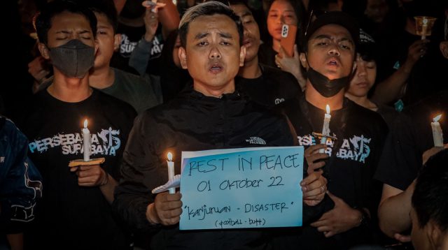 Ribuan Bonek dan Personil Polri Polrestabes Surabaya Gelar Doa Besama Untuk Korban Tragedi Kanjuruhan