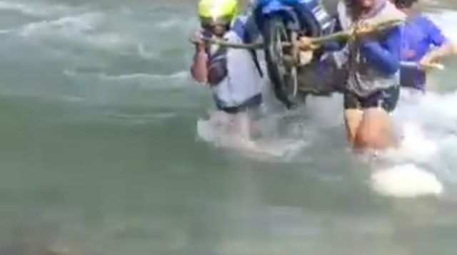 Viral…..!!! Pemuda Sumba Timur Gotong Motor Lintasi Banjir