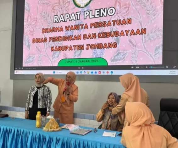 MMCNEWS.ID | Mengawali kalender kerja tahun 2026, Dharma Wanita Persatuan (DWP) Dinas Pendidikan dan Kebudayaan (Disdikbud) Kabupaten Jombang tampil beda. Tak sekadar rapat rutin, organisasi para istri ASN ini menyulap Aula 1 Disdikbud menjadi ajang peningkatan kapasitas diri melalui Rapat Pleno dan Beauty Class bertema “Gaya Berhijab Tampil Elegan”, Jumat (9/1/2026) pagi.