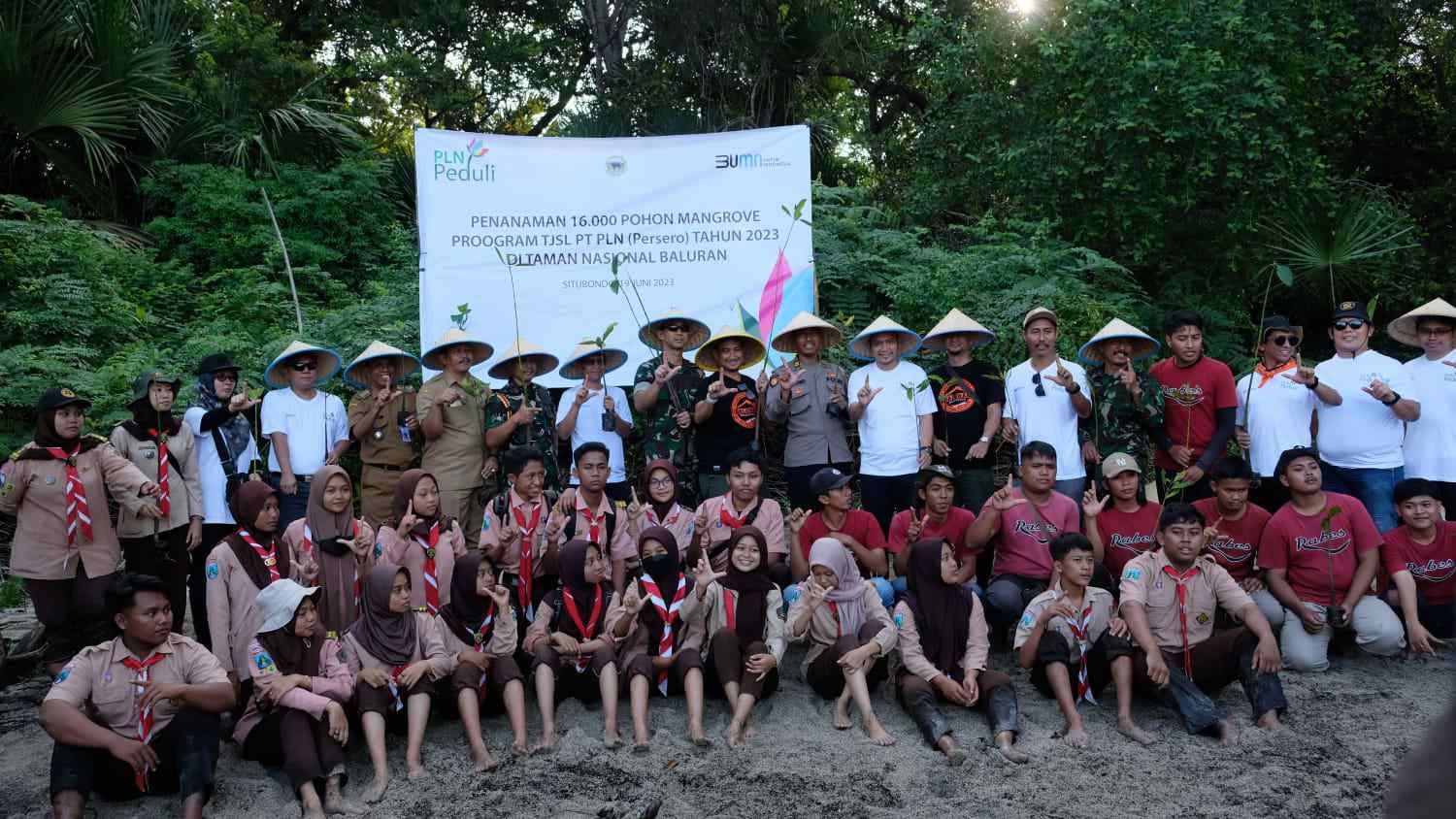 Hadir dalam penanaman Kepala Bidang Persampahan Dinas Lingkungan Hidup Situbondo, Hendrayono, SH yang mewakili Bupati Situbondo, Komandan Kodim 0823 Situbondo, Letkol Inf Bayu Anjas Asmoro, SE, Komandan Puslatpur 5 Baluran, Mayor Mar Widi Permono, S.AP, M.T., Tr.Opsla, Kepala Balai Taman Nasional Baluran, Dr Johan Setiawan, S.Hut, M.Sc., Senior Manager Perizinan Pertanahan dan Komunikasi, Eko Rahmiko, Kapolsek Banyuputih, Iptu Harnowo, Camat Banyuputih, Akhmat Subaidi, S.Sos., Komandan Koramil Banyuputih, Letda Suyitno, Sekdes Wonorejo Adi David , Manager PLN UPP JBTB 3, Henry Donald Silaen, Manager PLN UP3 Situbondo, Suhandopo, Komunitas Randu Agung Lestari serta para siswa pramuka Saka Wana Bakti. (19/6).