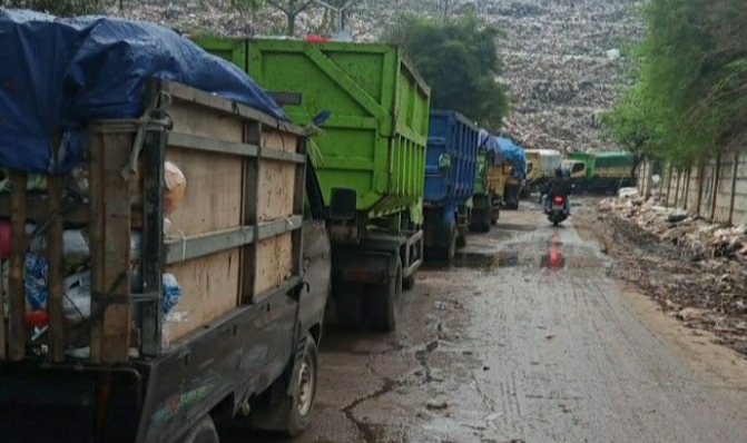 Diakui pula, belasan truk sampah sudah mengantri sejak dua hari lalu, sehingga terjadi penumpukan. Dengan terpaksa, akhirnya para sopir membawa kembali