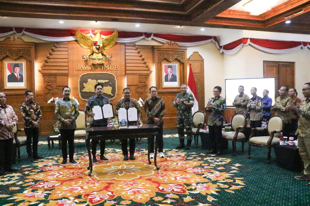 Bojonegoro – Pj Bupati Bojonegoro Adriyanto menghadiri Penandatanganan Nota Kesepakatan Bersama dalam rangka Pembentukan SMA Negeri 2 Taruna Pamong Praja Bojonegoro antara Pemerintah Provinsi Jawa Timur dengan Institut Pemerintahan Dalam Negeri pada Jum’at (14/02/2025) di Gedung Negara Grahadi.