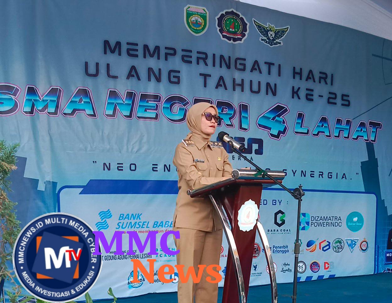 Bertempat di SMAN 4 Lahat Propinsi Sumsel sekira pukul 09.00 Win telah berlangsung kegiatan peringatan Hari Ulang Tahun yang ke 25 Tahun 2025 tepat nya berlangsung di Halaman Upacara SMAN 4 Lahat dihadir langsung oleh Wakil Bukati Lahat Widia Ningsih. SH. MH, Kepala dinas Pendidikan dan Kebudayaan Lahat Eti Listiani,SP Kasat Pol PP Lahat Heri Kurniawan. SStp, Ketua PGRI Lahat Dr. Asperi. , Kepala SMAN 2 Lahat, Dr. Tri Turnadi. Spd Mpd. para Tamu Undangan,seluruh Dewan Guru, Para Staf, Siswa-I SMAN 4 Lahat
